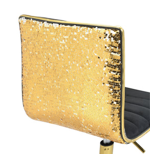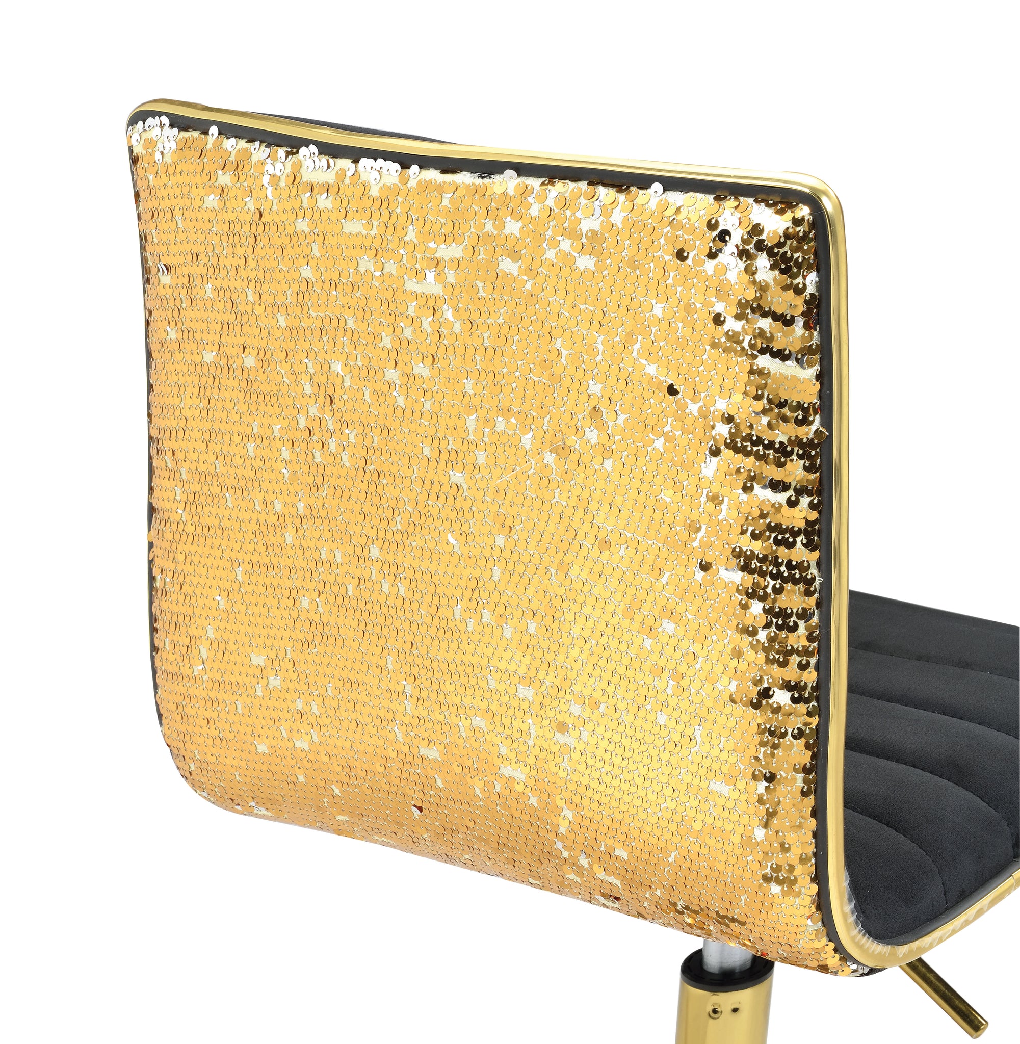 � Office Chair � Swivel Seat with 360 Degrees, and Adjustable Lift Height � Padded Back & Seat (Lined Sequins at Outside Back) � Armless � Metal Base: 5-Star Base w/Casters